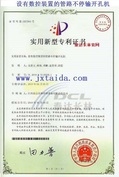 设有数控装置的管路不停输开孔机-实用型专利证书