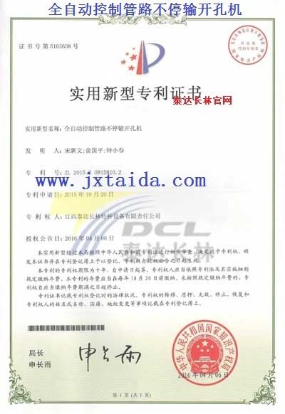全自动控制管路不停输开孔机-实用型专利证书