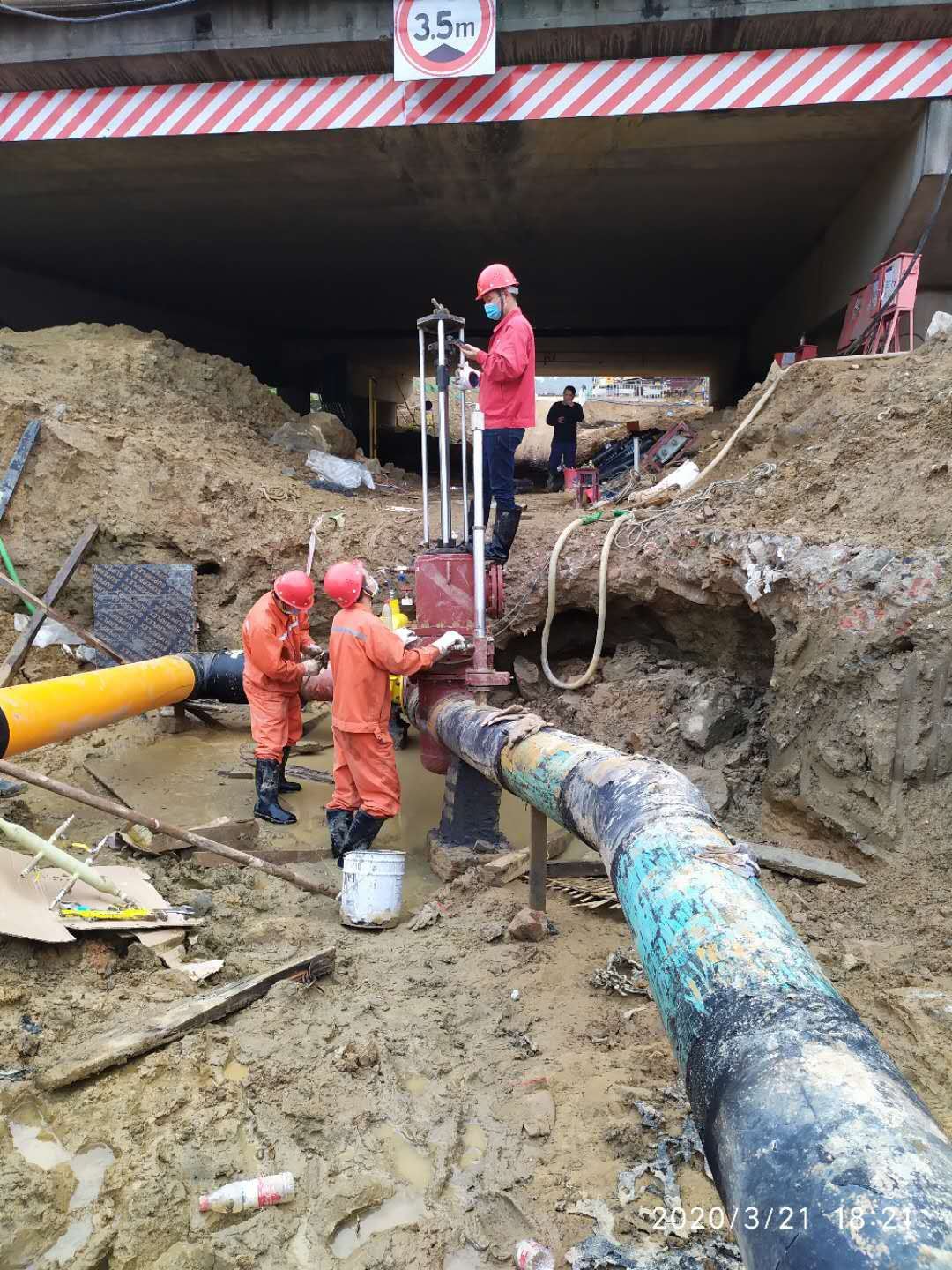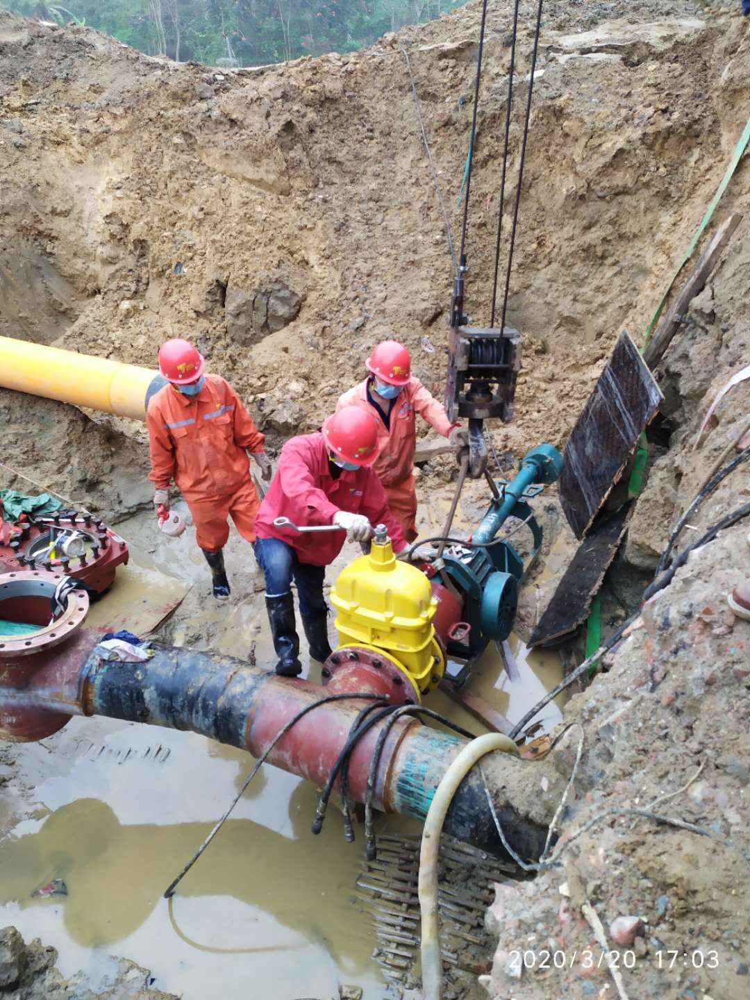 泰达长林施工队在广州进行管道DN300双封双接,圆满的完成了任务。