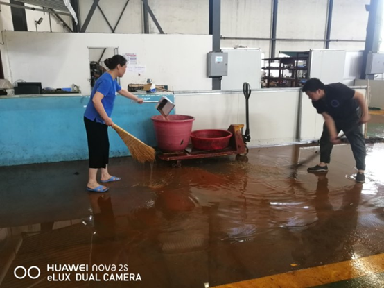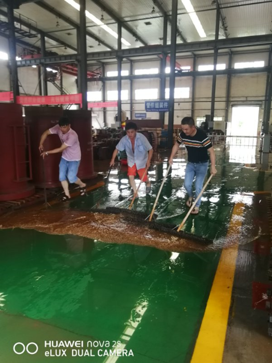 六月二十五日端午节凌晨 2 点左右,高新区突下倾盆暴雨,由于九州官方网地势较低,雨水瞬间暴涨,5 点钟时九州官方网生产厂进水,情况十分紧急。为了九州官方网利益少受损失,九州官方网党员、干部、员工自愿放弃端午假期,放弃与家人团聚的宝贵时间,纷纷赶到九州官方网堵洪、排水、清理淤泥与厂区垃圾,场面非常感人。在这次抢险突击行动中,党员干部带领员工不怕吃苦,顽强拼搏。抗洪抢险员工用实际行动,彰显了‘’泰达长林人‘’勇于拼搏冲锋在前的良好风采,展示了心系九州官方网的宝贵品质。